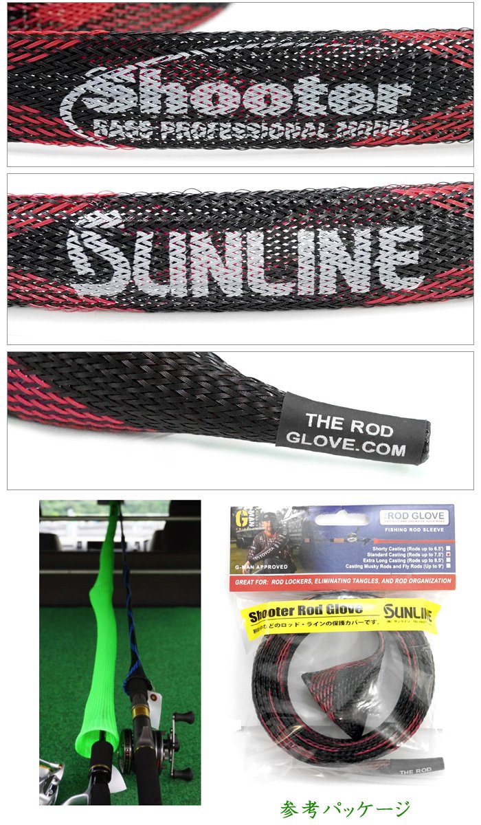 このロッドグローブは上から被せるだけで素早くロッドをまとめることができ、ガイドに通したままのラインも同時に守ります。